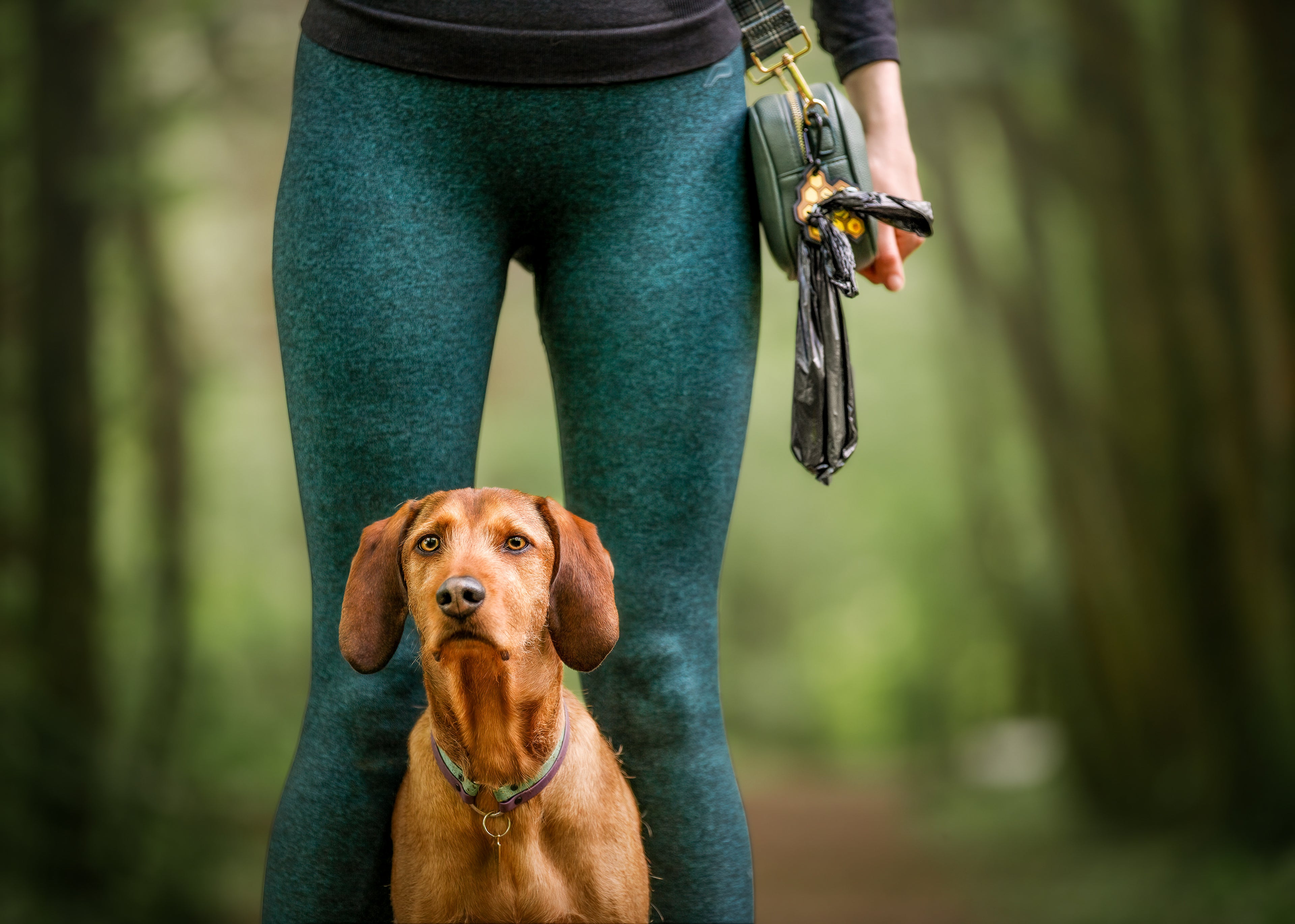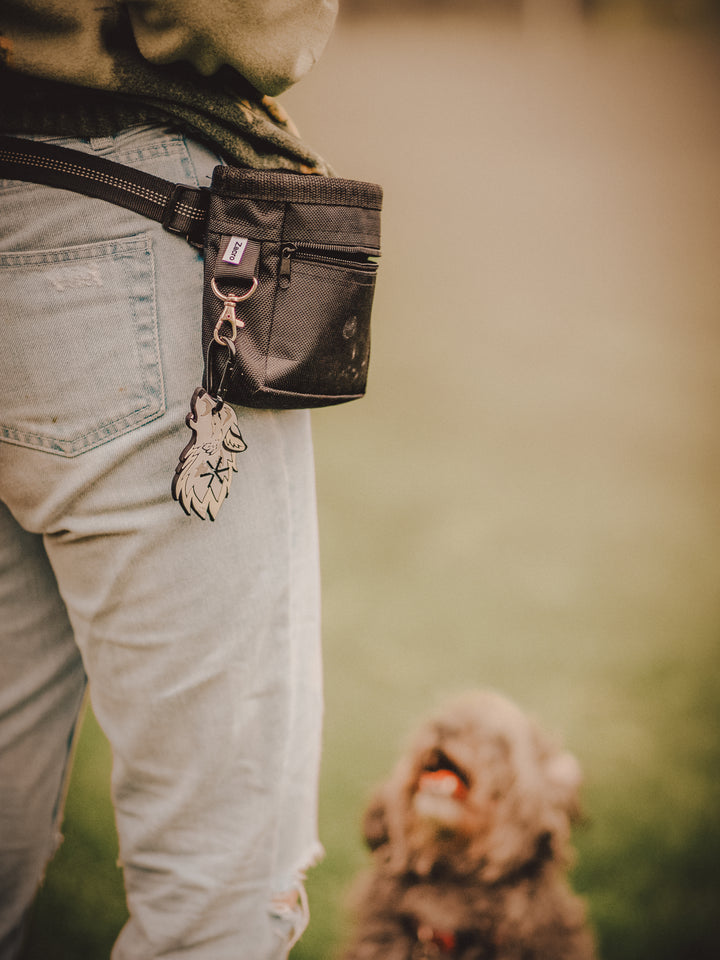 Hands free, hassle free. Our Poop Parkers hold your used bags until you find a bin, no juggling, just easy walks with your hound.